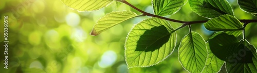 Fototapeta premium Sunlit Green Leaves - Close-up of Leaf Veins with Bokeh Background