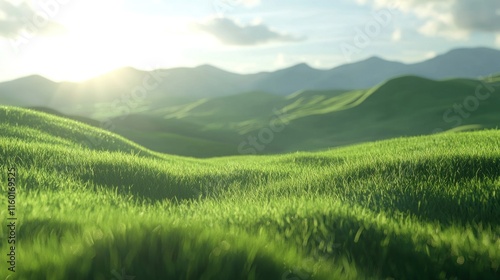 Fototapeta premium Sunlit green rolling hills and grassy landscape.