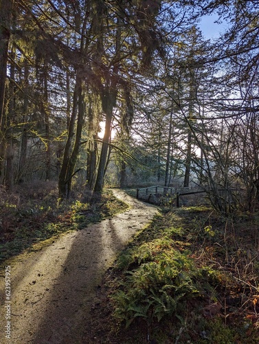 © Olivia, Fototapeta premium Sunlit Hiking Trail Path on the Columbia River Gorge in Autumn