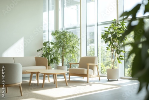 © kittipoj, Fototapeta premium Sunlit Indoor Living Room with Lush Green Plants