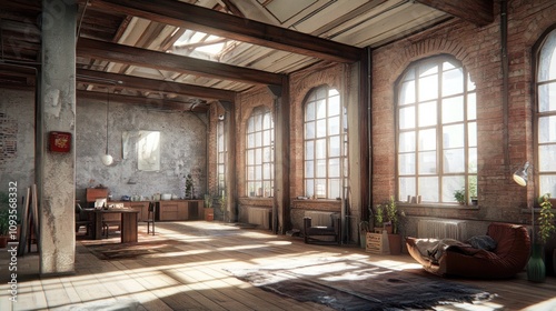 Fototapeta premium Sunlit Industrial Loft Apartment Interior Design