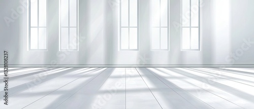 Fototapeta premium Sunlit Interior: Minimalist Room with Sunlight Streaming Through Windows
