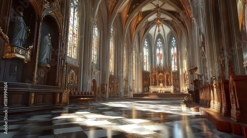 Fototapeta premium Sunlit interior of a grand cathedral