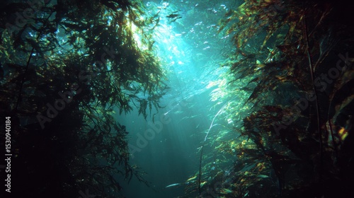 © Rehana, Fototapeta premium Sunlit kelp forest scenery background image