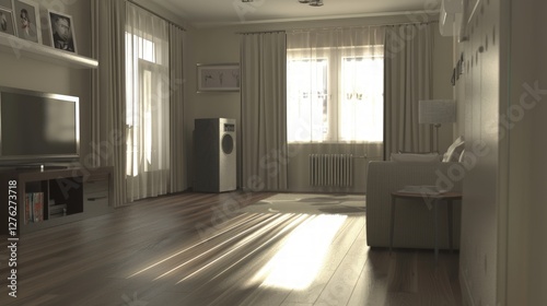 Fototapeta premium Sunlit Living Room Interior Design: Modern, Calm, and Serene Atmosphere