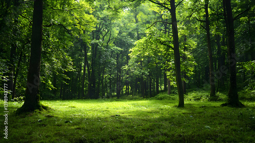 Obraz premium Sunlit Lush Forest Landscape
