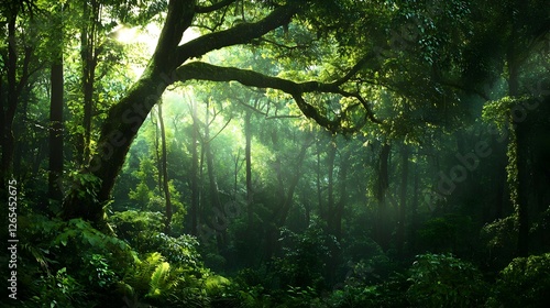 © artzone, Obraz premium Sunlit Lush Green Forest Scene