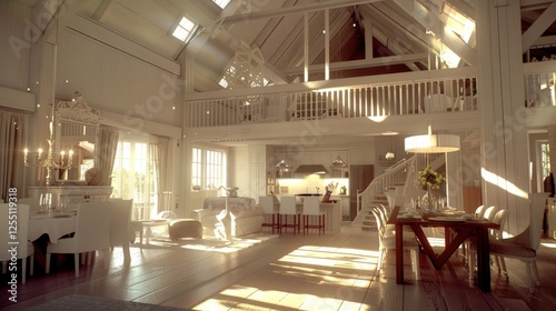 Fototapeta premium Sunlit Luxury: A Spacious Open-Plan Farmhouse Interior