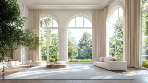 © KIMEHIME, Obraz premium Sunlit Luxury Living Room with Garden View