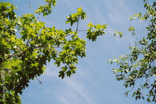 © Zireael, Obraz premium Sunlit Maple Leaves Against Sky
