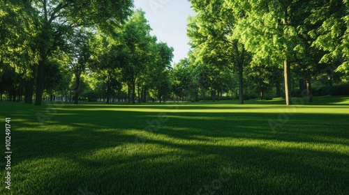 © ellisa_studio, Fototapeta premium Sunlit Meadow in a Lush Green Forest