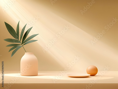 Fototapeta premium Sunlit Minimalist 3D Render Beige Background