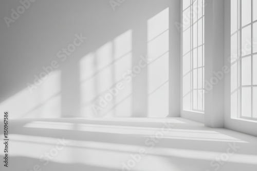 © Muhammad, Fototapeta premium Sunlit minimalist empty room with large windows.