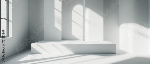 © acilll, Obraz premium Sunlit minimalist white platform product display background