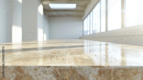 © Hasibnikon, Obraz premium Sunlit modern interior with marble countertop and large windows