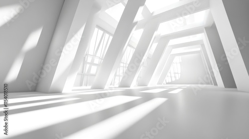 © Alfath, Obraz premium Sunlit modern white architecture interior.