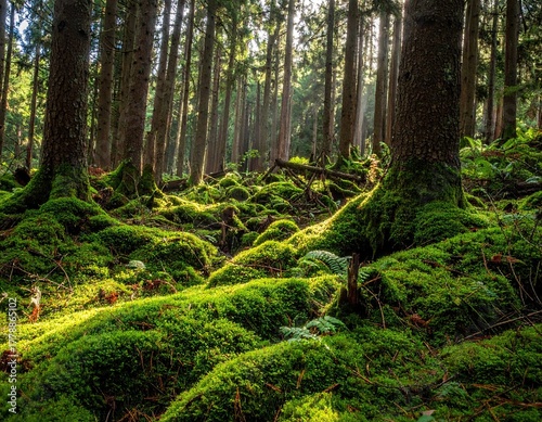 Obraz premium Sunlit Mossy Forest Floor