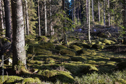 © Birgitta, Obraz premium Sunlit mossy forest ground