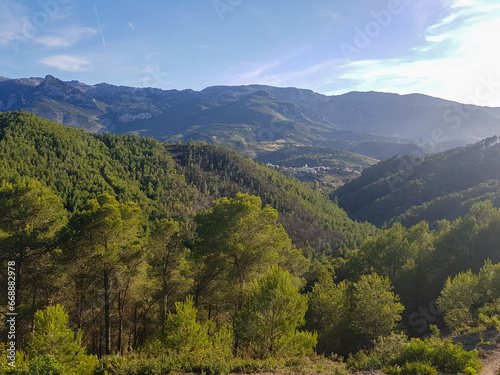 © Ardoun, Naklejka premium Sunlit Mountains and Pine Forests