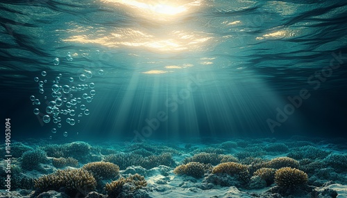 Fototapeta premium Sunlit Ocean Floor Coral Reef Scene
