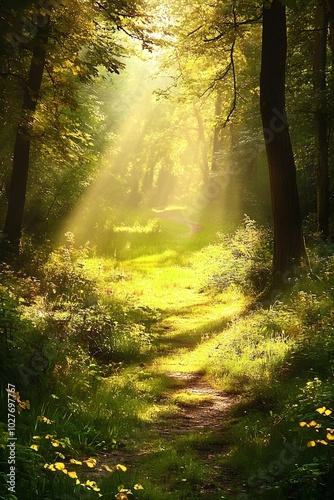 © fayyasin99, Fototapeta premium Sunlit Path in a Lush Forest