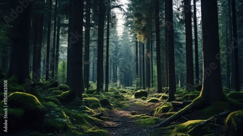 © art, Obraz premium Sunlit Path Through a Dark Forest