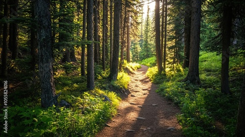 Fototapeta premium Sunlit Path Through a Dense Forest