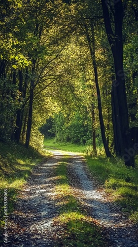 © fourth, Fototapeta premium Sunlit path through a dense forest