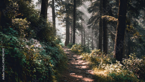 © darshika, Obraz premium Sunlit Path Through a Forest