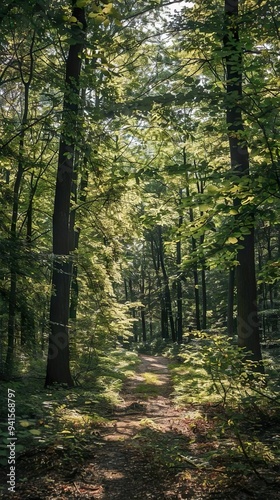 Obraz premium Sunlit Path Through a Green Forest