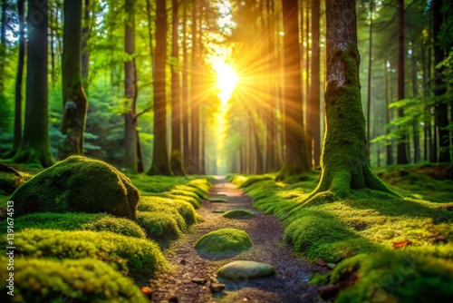 © Arethaawykoff, Obraz premium Sunlit Path Through a Lush Forest