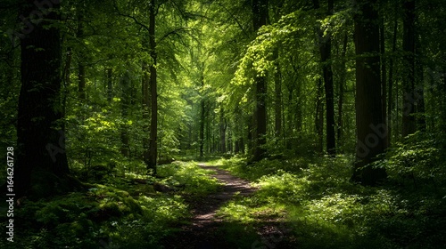 Obraz premium Sunlit path through a lush forest.
