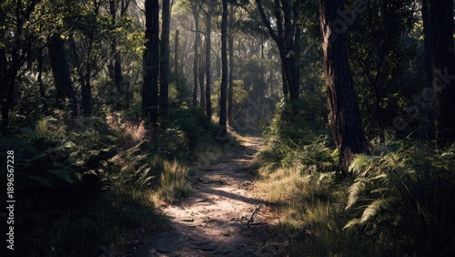 Obraz premium Sunlit Path Through a Lush Forest