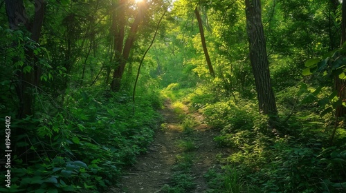 © wannakorn, Obraz premium Sunlit Path Through a Lush Forest.
