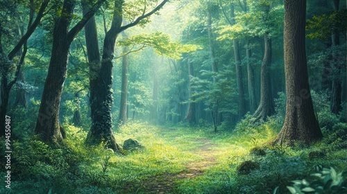 © Penatic Studio, Fototapeta premium Sunlit Path Through a Lush Forest