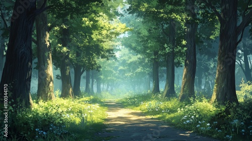 Obraz premium Sunlit Path Through A Lush Green Forest