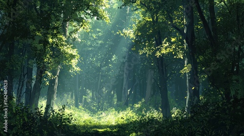 © isend, Fototapeta premium Sunlit Path Through A Lush Green Forest