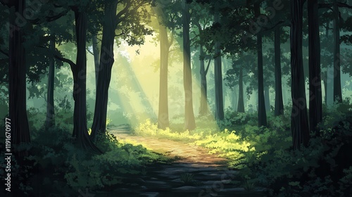 Obraz premium Sunlit Path Through A Lush Green Forest