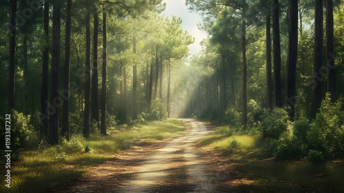 Obraz premium Sunlit Path Through a Lush Green Forest