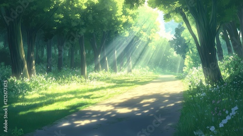 Obraz premium Sunlit Path Through A Lush Green Forest