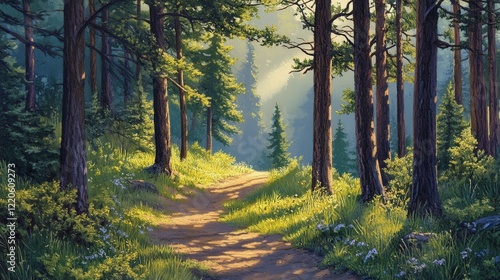 Obraz premium Sunlit Path Through A Lush Green Forest