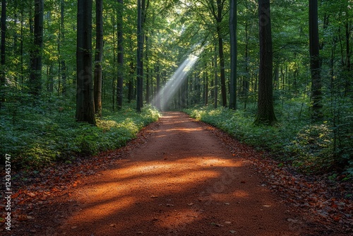 © boler, Obraz premium Sunlit Path Through A Lush Green Forest