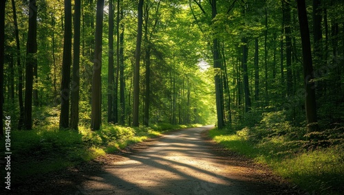 © Ahmad, Obraz premium Sunlit Path Through a Lush Green Forest