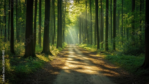 © Ahmad, Obraz premium Sunlit Path Through a Lush Green Forest