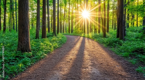 © Ichikawa, Obraz premium Sunlit path through a lush green forest