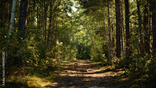 Obraz premium Sunlit Path Through a Lush Green Forest