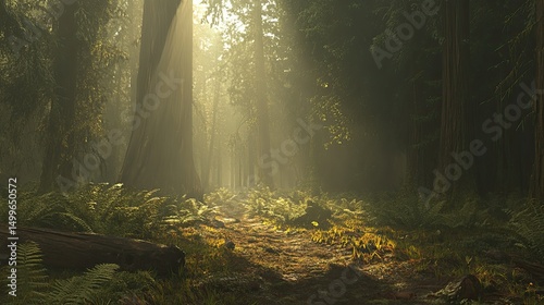 © Maz, Obraz premium Sunlit path through a misty forest