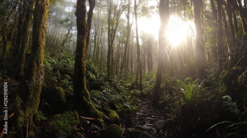 © Memayu_Std, Obraz premium Sunlit Path Through a Mossy Forest