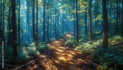© boler, Obraz premium Sunlit Path Through a Mystical Forest Scene