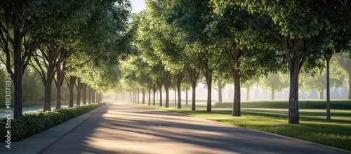 © STwul, Obraz premium Sunlit path through a tree-lined avenue. (1)